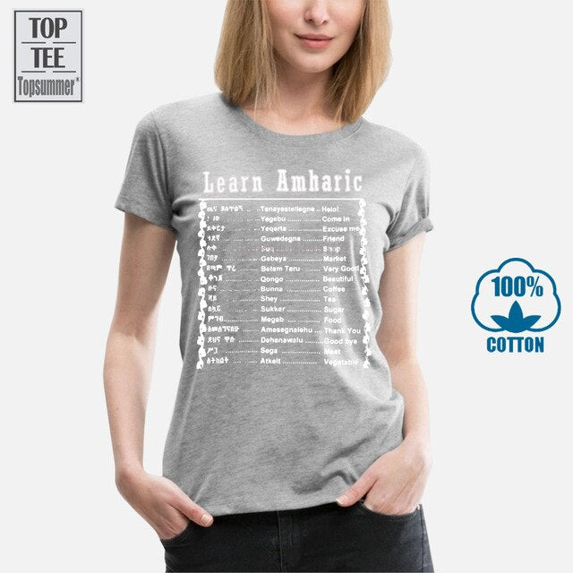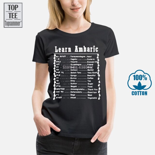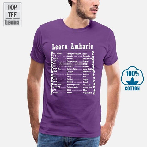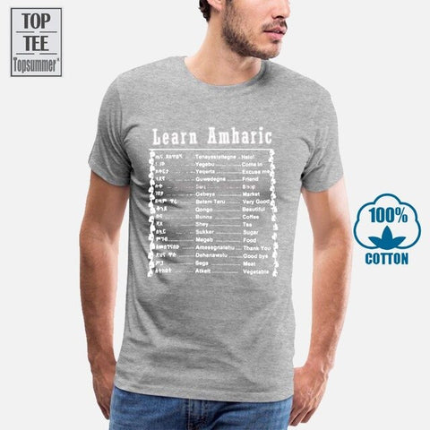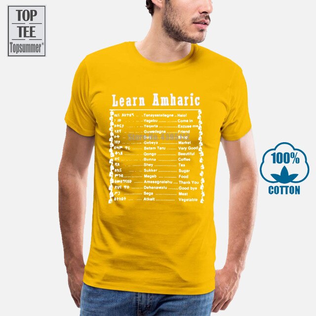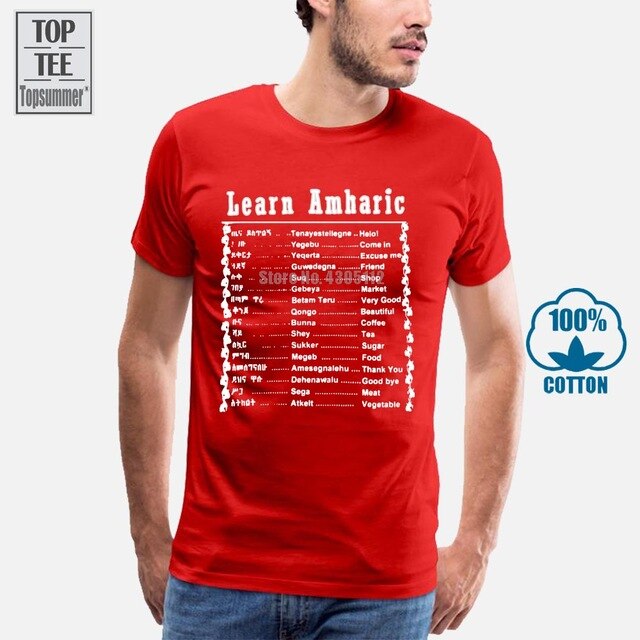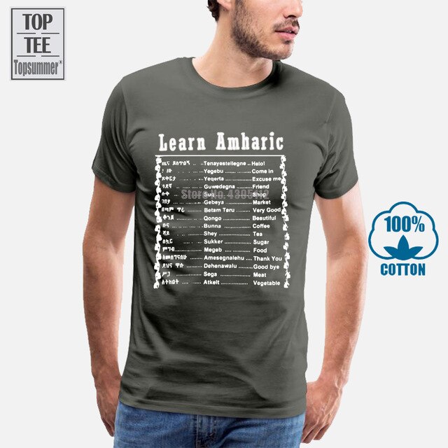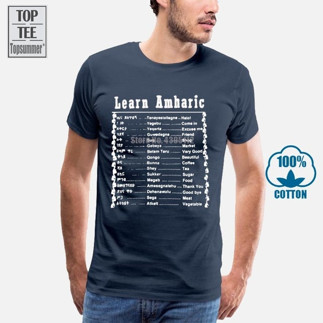 Learn Amharic T Shirt Mens Large Black White Made In Ethiopia Ethiopian Letters Summer Man T Shirt Tops Tees New