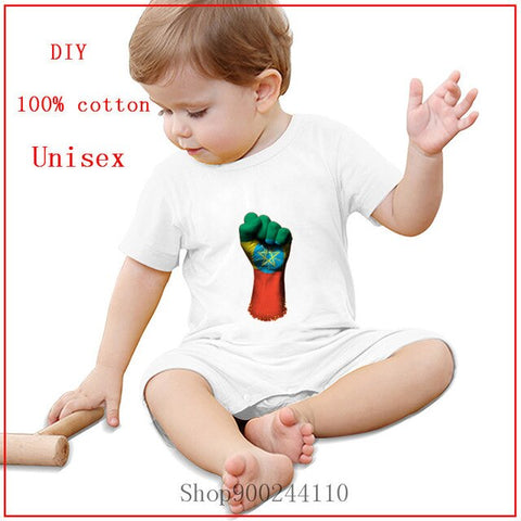 Material: Cotton Style: Novelty Model Number: Flag of Ethiopia on a Raised Clenched Fist Pattern Type: Animal Department Name: Baby Collar: O-Neck Item Type: Bodysuits Gender: Unisex Sleeve Length(cm): Short Fit: Fits true to size, take your normal size