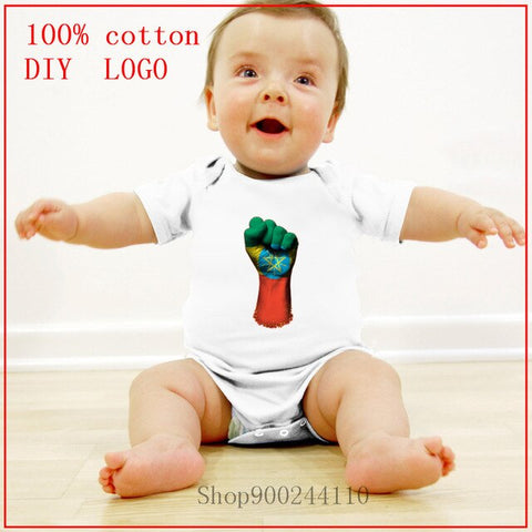 Newborn rompers Baby Clothes Cotton Flag of Ethiopia on a Raised Clenched Fist Newborn Short Sleeve Bodysuits Baby Boy Clothes
